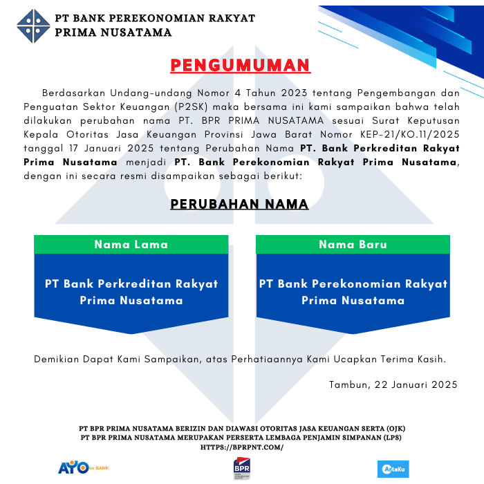 Kepada seluruh nasabah PT BPR PRIMA NUSATAMA Berda [...]