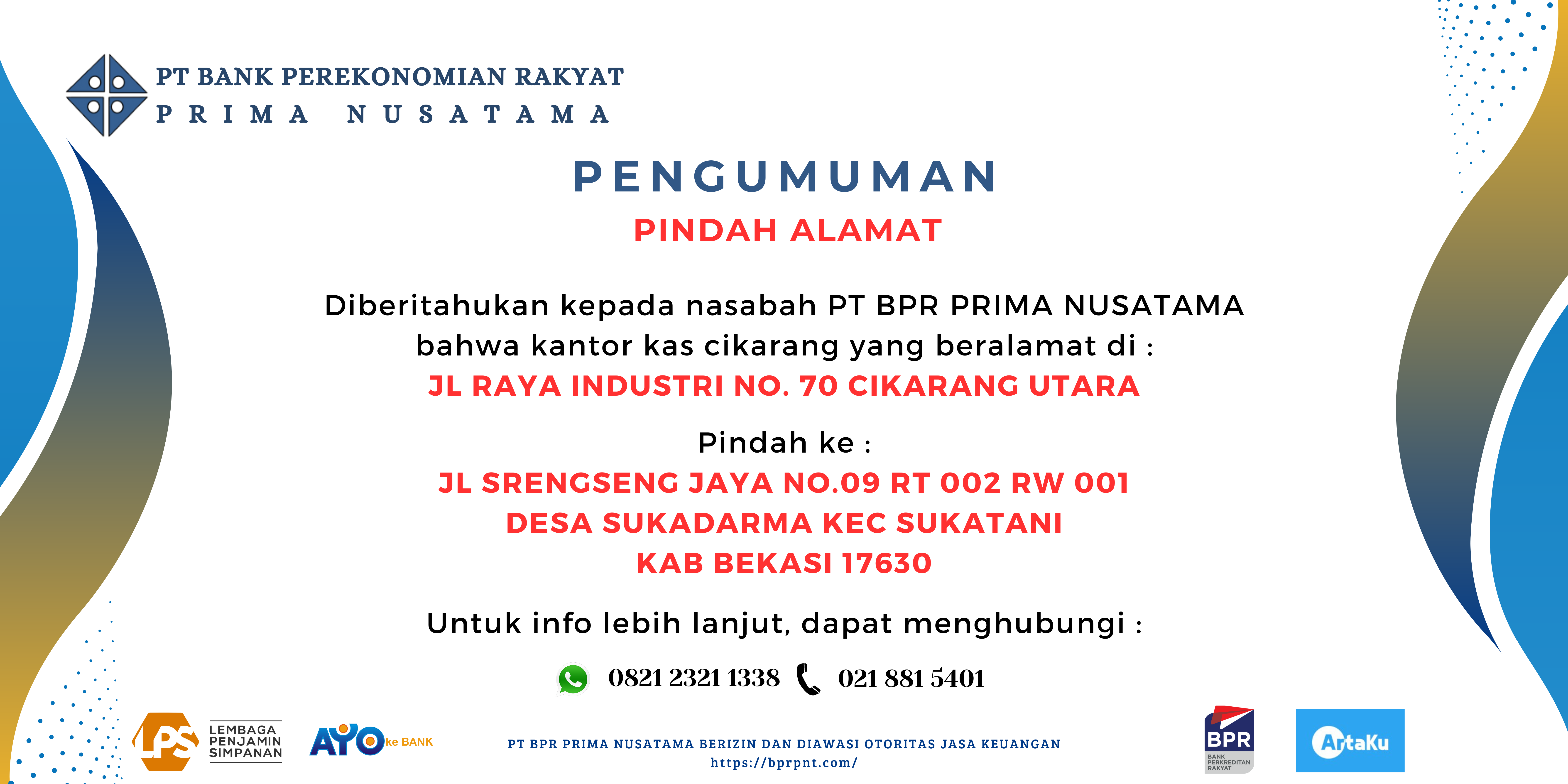 Diberitahukan kepada NASABAH PT BPR PRIMA NUSATAMA [...]